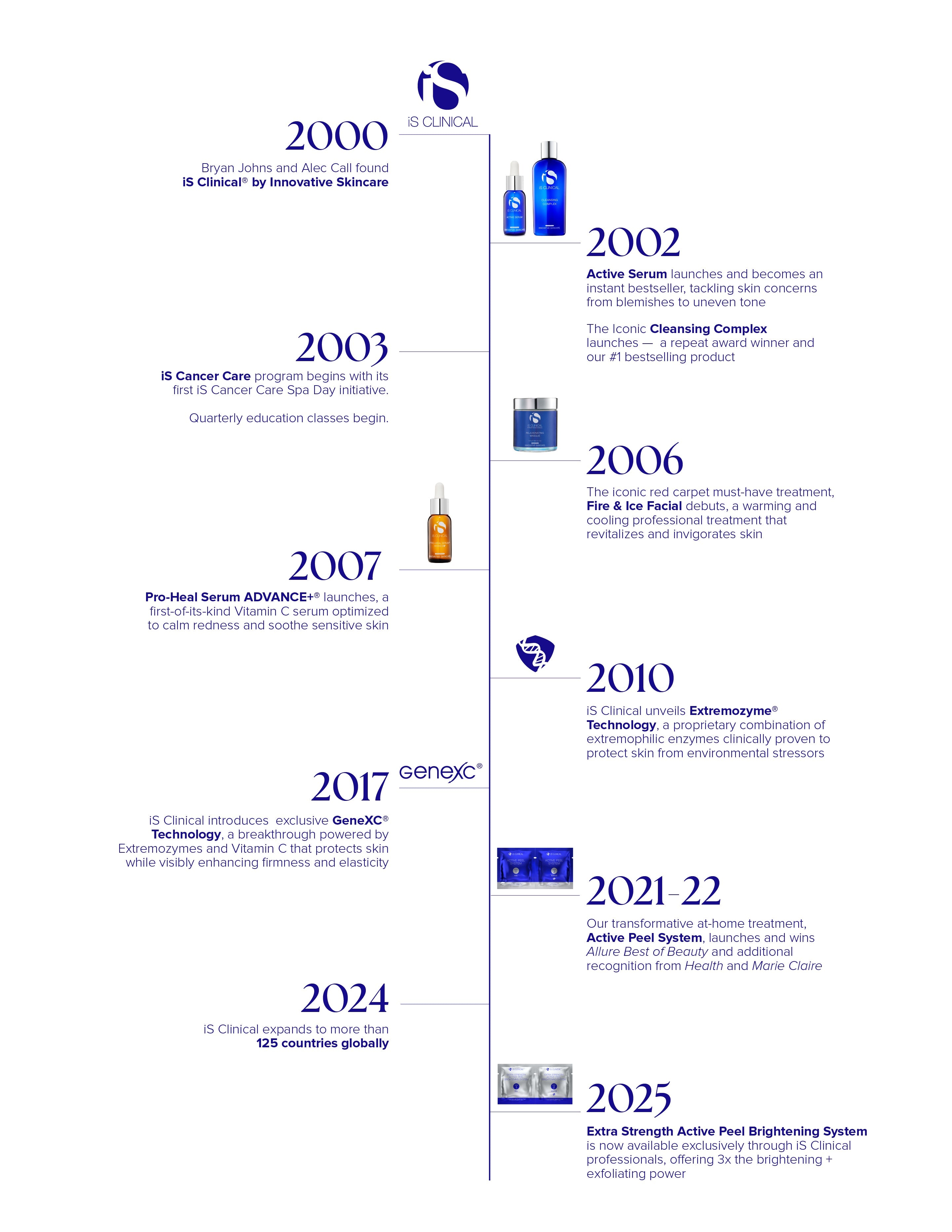 Since 2000, iS Clinical has been guided by integrity, positivity, and innovation. Co-founders Bryan Johns and Alec Call envisioned elevating the physical and emotional well-being of people worldwide. From humble beginnings to a globally recognised skincare brand, we lead with evidence-based science and a belief that great skincare can transform lives.